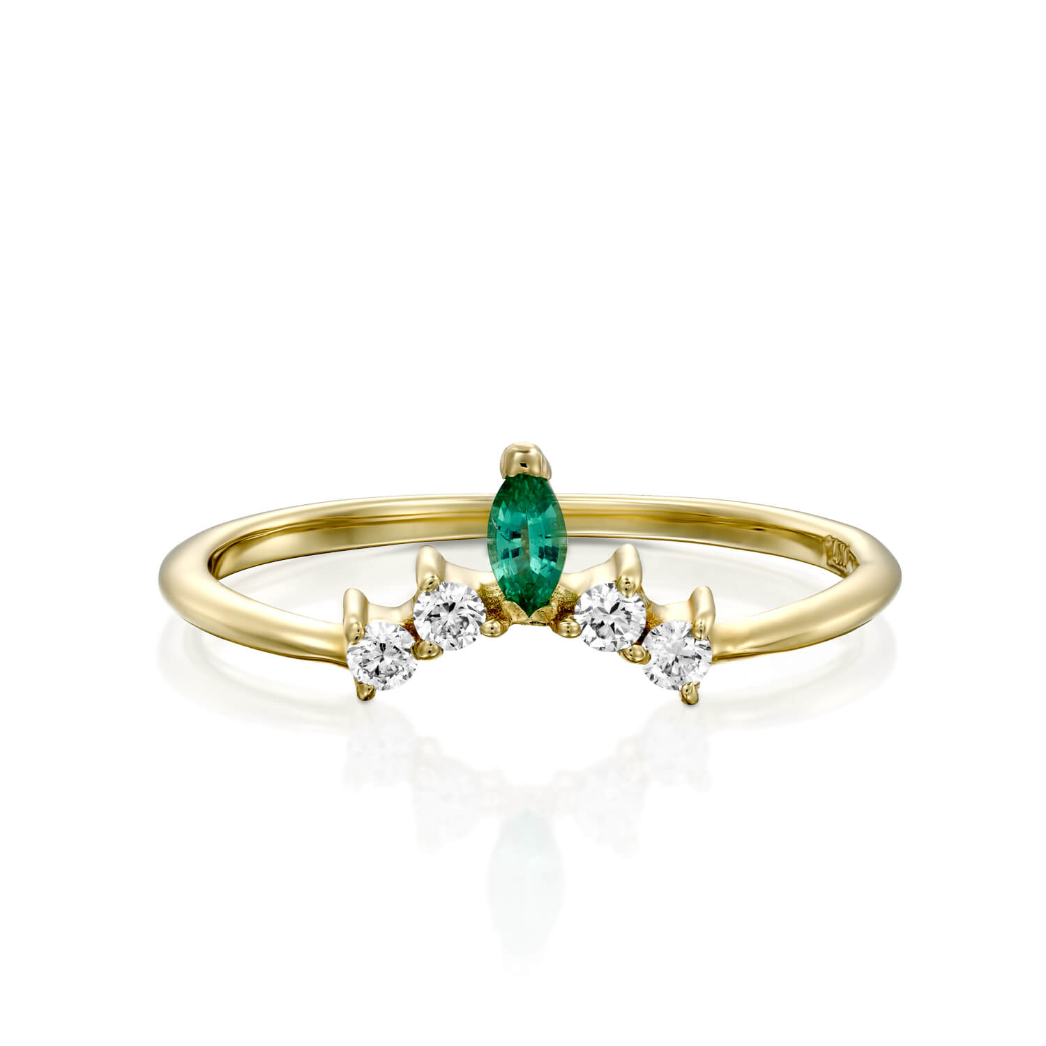 טבעת כתר יהלומים ואמרלד ירוק מרקיז ADR-00396-1