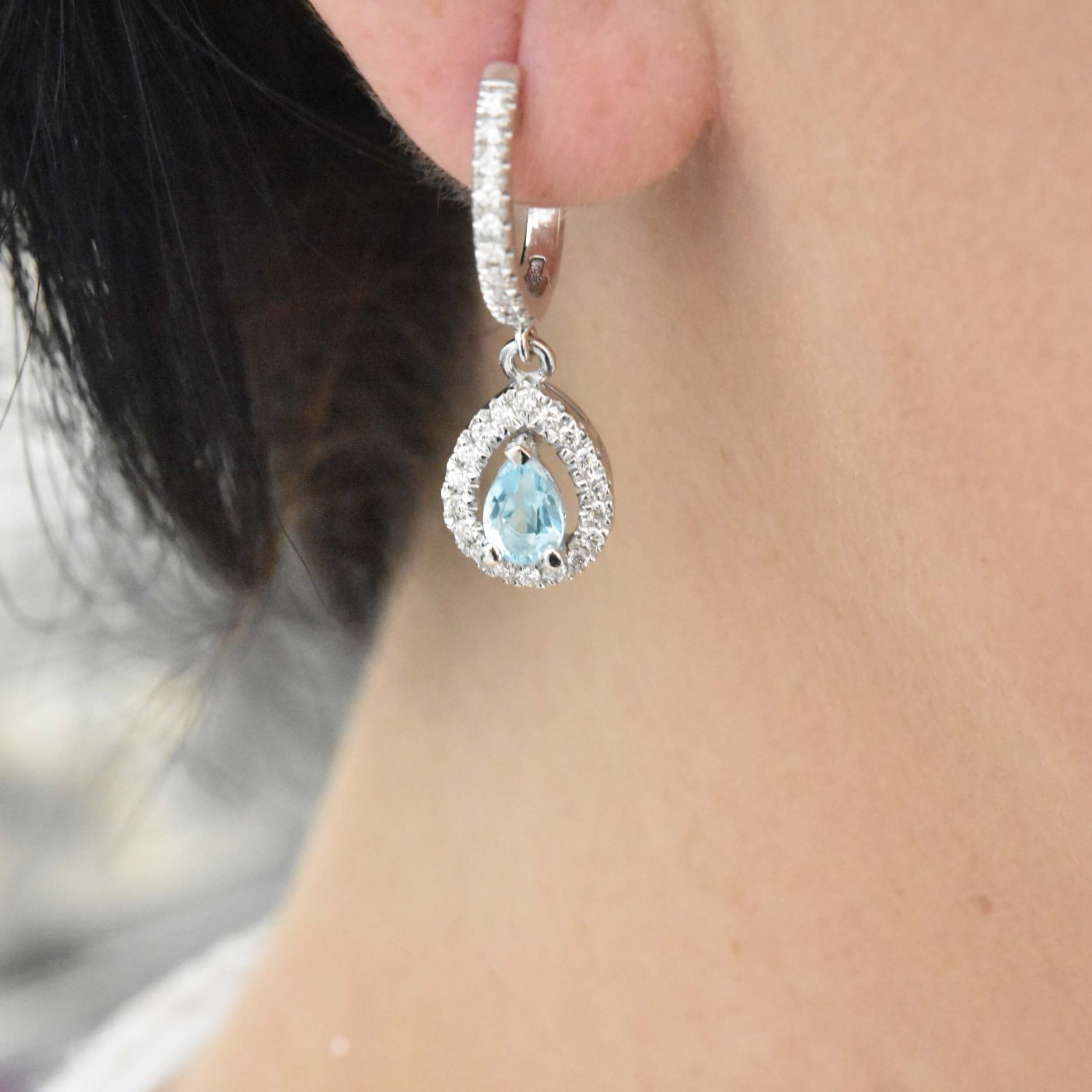 עגילים נתלים בלו טופז טיפה ויהלומים ADE-00338-5