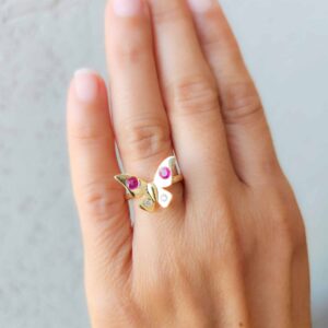 טבעת פרפר משובצת יהלומים ורובים ADR-00671-8