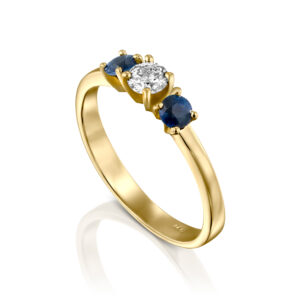 טבעות אירוסין שלושה אבנים, יהלום וספירים ADR-00566-3