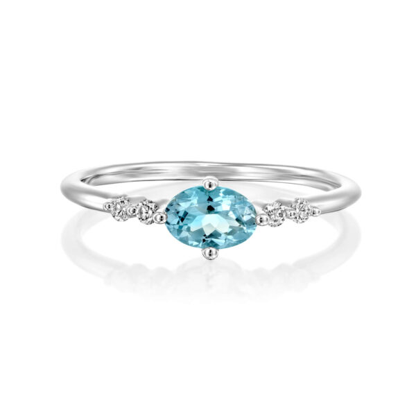 A fashionable aquamarine ring and diamonds in a special style, set with a 0.40 carat aquamarine center and 2 sparkling diamonds on each side that create an elegant look. A diamond and gemstone ring that serves as a colorful and graceful addition to the fingers and is suitable for everyday and special occasions.
