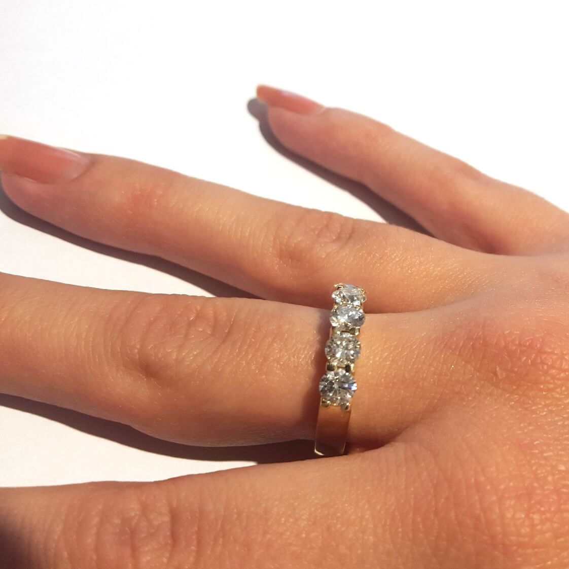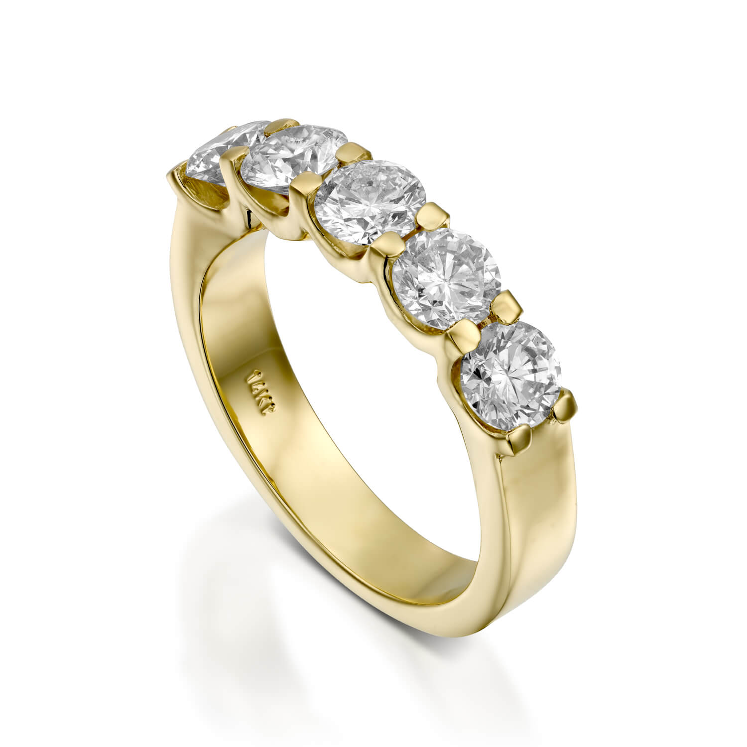 טבעת יהלום אלגנטית ויוקרתית נוצצת מכל זווית משובצת 5 יהלומים גדולים במשקל 1.50 קראט. טבעת יהלום שמאפשרת למירב האור להיכנס ליהלומים וליצור מקסימום ברק ו”אש”.