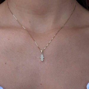 תליון יהלומים מעבדה שלוש טיפות יוקרתי ומרשים משובץ 41 יהלומים במשקל 0.32 קראט סך הכל. תליון יהלומים עם נוכחות שגולש עם קו הצוואר באופן אלגנטי.
